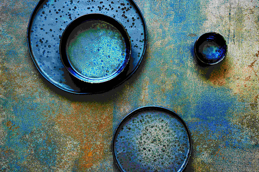 Phobos, Caotici tocchi di colore e vibranti tonalità. Una collezione unica disponibile in due colorazioni: effetto RAKU blu su nero ed effetto RAKU ruggine su marrone. I puntini “reattivi” rendono ogni articolo della collezione unico e irriproducibile. Lo STONEWARE è un materiale ceramico noto per la sua robustezza, per i bassissimi livelli di porosità e per l’elevata capacità di condurre il calore.